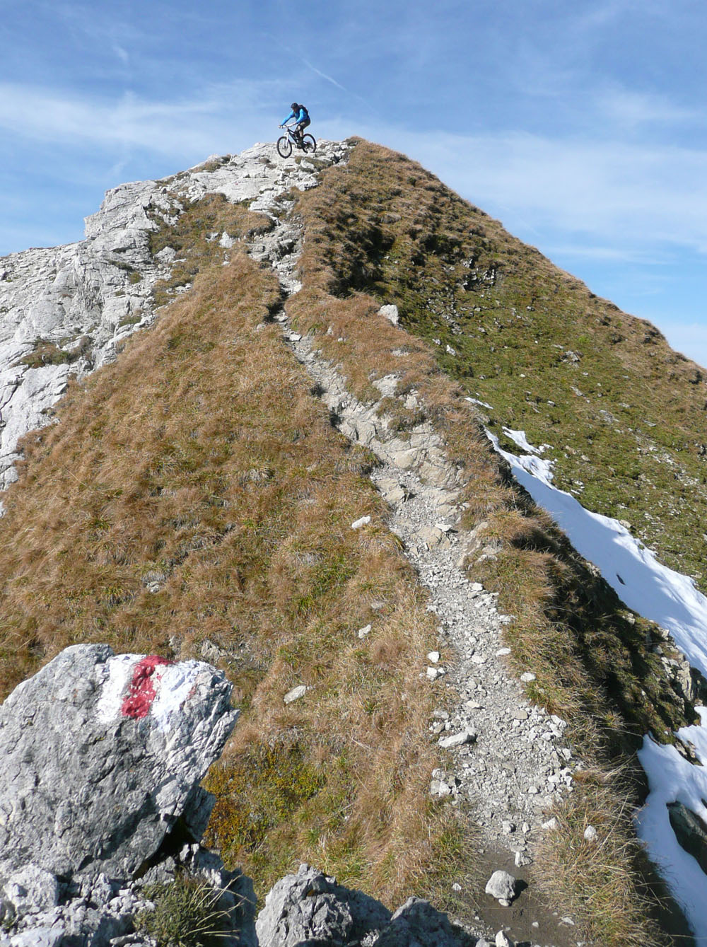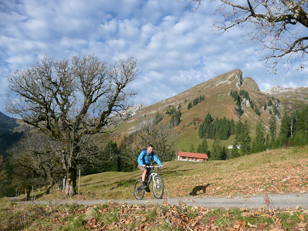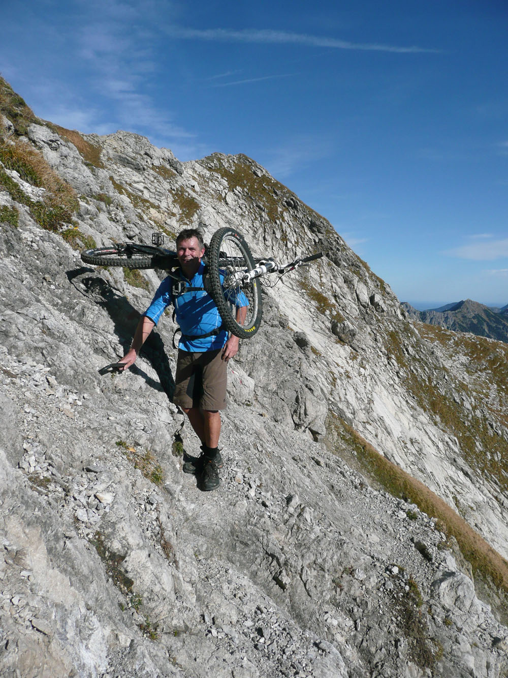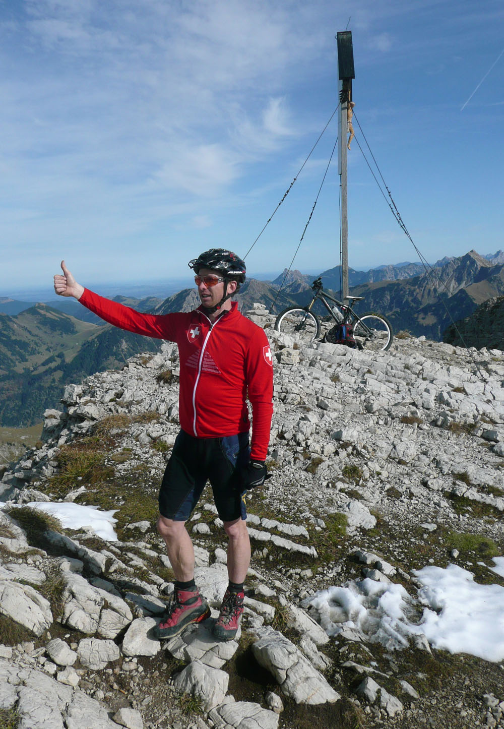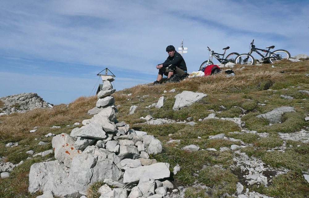 der Herbst 2003 zweigte sich meist nicht so von seiner allerbesten Seite. Es gab nur wenige Gelegenheiten für knackige Hochtouren. Die letzte fast schneefreie Option haben Michael und ich nochmal genutzt, um die felsigen Kalksteinberge im Allgäu zu erkunden. Jeder von uns war schon mal auf vielen der Nachbargipfel, aber dieser Eine hat uns mit dem Bike irgendwie noch gefehlt.