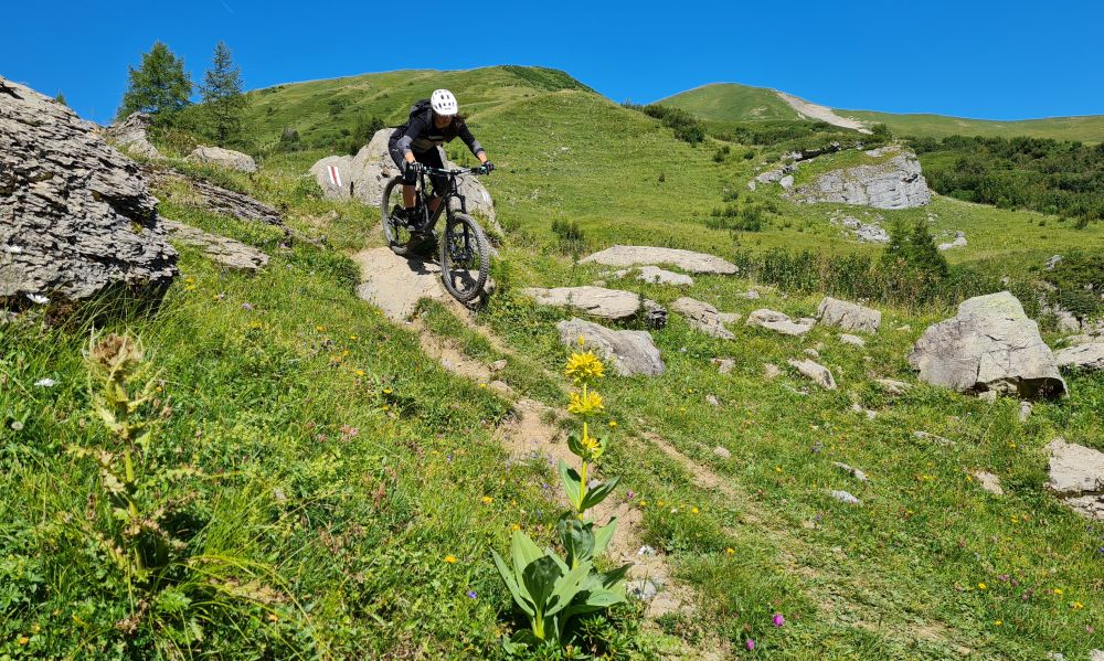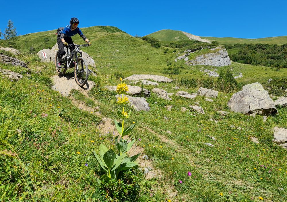 Wir haben jeweils den halben Tag Zeit die tolle Mountaibikeregion zu erkunden. Schnell erkennen wir, dass in Lenk ein ungeschliffener Diamant darauf wartet entdeckt zu werden. Die Singletrails sind einzigartig gut, bestens zu befahren und bieten unglaubliches Potential für eine Entwicklung zu einer Top-Mountainbikedestination. Zudem findet Alles man von hochalpinen Felsentrails über flowige Panoramawege und endlose Wurzelteppiche in den Bergwäldern rund um Lenk.