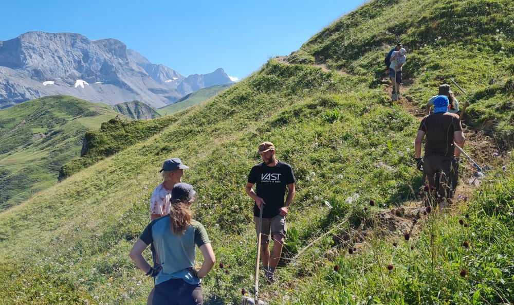 Angeleitet von den Trailbau-Spezialisten von Vast Trails erlernten die Teilnehmenden das Einmaleins des nachhaltigen Wegebaus. Während der ganzen Woche herrschte eine ausgelassene Stimmung. «Der Zusammenhalt unter den Teilnehmenden war trotz des teilweise grösseren Altersunterschieds und der unterschiedlichen beruflichen Herkunft von Anfang an ausgezeichnet. Mit so einer tatkräftigen Motivation hätten wir nicht gerechnet!»
